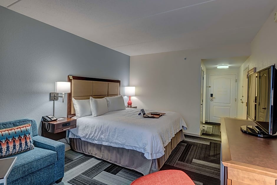Featuring a roll-in shower, this disability accessible room also offers visual alarm and notification devices.